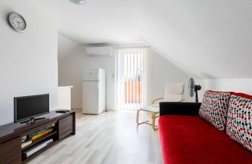 Balatonmáriafürdő 21 km from Keszthely: Cosy 2-family house "Pear Trees", renovated in 2020. In the resort, in a sunny position, 200 m from the lake, 1 km from the beach. Private: property 800 m2 (fenced), garden with lawn and trees, lawn for sunbathing. In the house: WiFi, air conditioning, washing machine, heating to be paid on the spot. Shop 300 m, grocery 500 m, restaurant 200 m, grass beach 200 m. Cycle lane 100 m. Please note: railway line closeby.