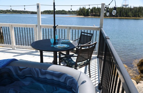 Unwind on yourprivate waterfront deck, watch sailboats drift by, and enjoy frequent sightings ofporpoises, seals, and seabirds. Take a dip in the ocean, launch your kayak, or fish for mackerel off the nearby government wharf. At night, soak in yourprivate hot tubunder the stars.