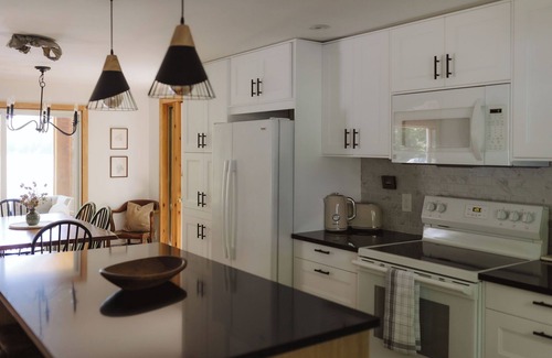 The cabin is fully renovated with new flooring, new kitchen and new bathrooms for a warm and pleasant stay. 3 bedrooms with comfy mattresses! 1.5 bathrooms with a bath. Spacious family area with kitchen and dining area in an open-concept design.