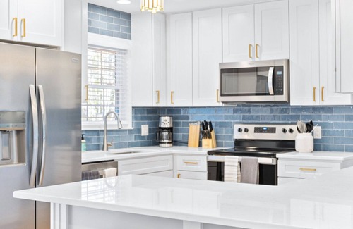 The kitchen is fully equipped with all the appliances and amenities you need. Each of the bedrooms is beautifully appointed with plush bedding, for a restful night's sleep.
