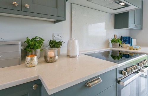 You can read all about it in your cosy semi-detached home by a roaring fire and stare through the patio doors at the sea. A picture window in the dining area is a great spot to plan your adventures with a glass of wine and a fish supper. Inside is generous, light-filled and roomy with serene, panoramic views are far-reaching to tempt you outside again and again. Or spill outside on sunny days and set up for an evening and be part of the view.The kitchen is scrupulously shiny with sleek stone surfaces, space for prepping and big views. The main dual aspect king bedroom is large and light. A double and a king bedroom feel fresh and contemporary. A gleaming bathroom offers a bath and a sparkling shower for a fresh start to each day. Perfect for big groups too is next door Penrhyn Isa Un – together both houses can sleep 12.