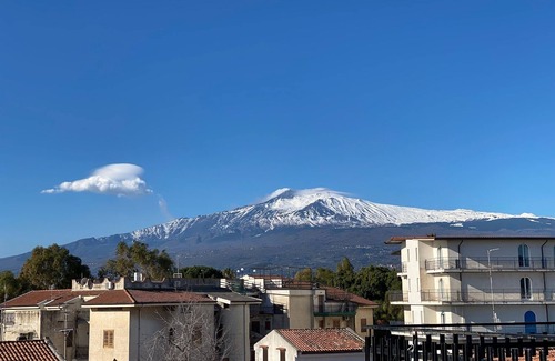 Beautifully remodeled one bedroom, one bathroom with a large outdoor terrace. Great views of Mt. Etna and Taormina. Across the street from the best supermarket around ,10 minute walk to the beach or take advantage of the free beach shuttle during august. Free parking inside the condominium. Air conditioning/ heating .