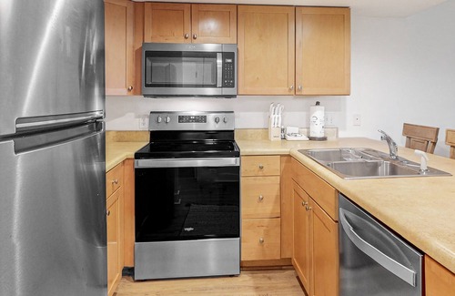 Kick back on a sofa bed and two plush armchairs in the inviting living room. Watch favorite shows on the 50-inch TV with Dish Satellite TV. Craft home-cooked meals in the well-equipped kitchen, outfitted with a suite of full-size appliances. Helpful kitchen gadgets include a blender, coffee maker, and toaster. Gather for mealtime at the dining table with seating for everyone. The breakfast bar provides additional seating.