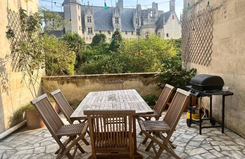 This three-bedroom house is perfect for a couple, 4 or 6 guests, it features one bath tub/shower, one shower, 3 toilets, a terrace opening on the chateau de Montsoreau.