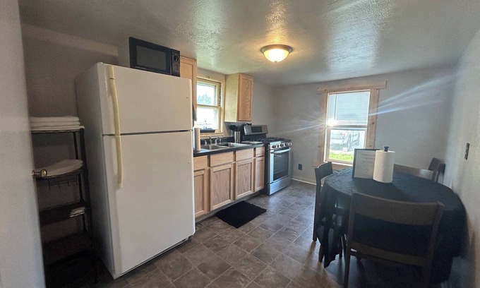 Whether you are coming in to fish with friends and family, go out on a charter, or are just visiting to explore this vacation area close to island ferries, E. Harbor State Park, or Cedar Point, enjoy a relaxing stay at our 5 unit motel with a full kitchen in Port Clinton. This property offers boat parking and plug-in, outdoor grills, picnic tables, fire pit, fish cleaning station, and a front porch to watch planes fly in and out of the Erie Ottawa airport. This unit can sleep 5 but will be most comfortable for 4. You'll find all the essentials for a comfortable stay, including heat/AC, smart TV, linens and towels provided, and WiFi. The majority of this unit has been renovated this year and is on the first floor of the building. The full kitchen includes a full size refrigerator and stove, as well as cookware essentials, dishes, and small appliances such as a coffeemaker and toaster. We are located nearby to assist and please let us know if you need anything during your stay!