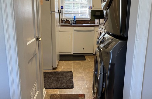 Great location!! City living with a country view. Enjoy the horse park view from the living room of this cozy, private 2 bed, 1 bath sleeps 4. Convenient to I-285 and downtown Decatur. Close to Emory, Fox Theater, Olympic park, Georgia Aquarium, the Ferris Wheel and everything Atlanta! Ponce City Market is great for shopping and dining and only minutes away. Stone Mountain Park is another Atlanta favorite and just a short drive east. Whether your vacationing, visiting family, attending events or just a break from the highway, the location is perfect for every reason to visit Atlanta. This cozy, private two bedroom home is close to everything! Private driveway with carport has plenty of space for more than one car. A small seating area is under the carport and a newly added deck added to the back of the house to enjoy all the views. Fully stocked kitchen has everything needed for preparing a meal or just reheating. Fresh towels, linens, hair dryer and some toiletries are provided. Paper towel and cleaning supplies are always available. There is a queen bed in first bedroom and a full size bed in the second bedroom. The living room has a a pull out sofa couch and a designated "dog couch". The "dog couch" is positioned for premium viewing. Watch the large tv with Roku channels, and other streaming. Pass thru room has futon type couch. The large back yard has a chain link fence 5 feet high. There is plenty of room for dogs to run. The treelined street is perfect for dog walking. Dog amenities make this better than pet friendly! The square footage of the home only allows 2 dogs and under 50lbs.