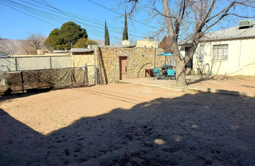 Centrally located!! La Galeria showcases local artists by presenting and offering their work. Extra clean house has 3 bedrooms 1 bathroom, 2 with queen beds and bunk bed (bottom full bed and top twin bed and full kitchen. We take the edge off El Paso summers with modern refrigerated air conditioning. Spacious backyard with Fenced Dog Run. Enjoy your stay in El Paso without the worries of getting around. This home is centrally located 2 minutes from HW 54 or I-10 and equal distance from all sides of town. Beautiful park 1 block away! Quick access to Ft. Bliss, El Paso International Airport(10 Minutes), and Ports of Entry into Mexico. Albertson's is less than 5 minutes. UMC/Children's hospital(4 minutes). Del Sol Medical Center(10 minutes) Bassett place 5 minutes away and Cielo Vista/ Fountains 10 minutes away!