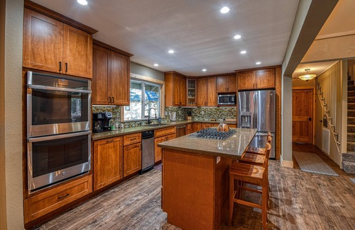 Amenities: Expansive private location for large groups or family events, walking distance to the Lube Room, WiFi, smart,TV with Netflix / HBO / ESPN, Sonos sound system with Pandora & Spotify, central heat, woodstove and fireplace (firewood provided), propane BBQ (propane provided), two rec rooms with pool table, ping pong, foosball and wet bar, fully stocked kitchen, spacious deck with treetop views, expansive level & forested property, washer and dryer, dishwasher, and coffee maker.
