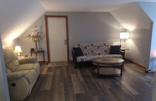 The second floor apartment is a completely separate unit from our home with a separate entrance and exit accessed through the side garage door. It is a bright and roomy apartment with tons of storage and closet space, that spans the whole second floor of our home. The neighborhood is quiet and a great place to walk your dog!