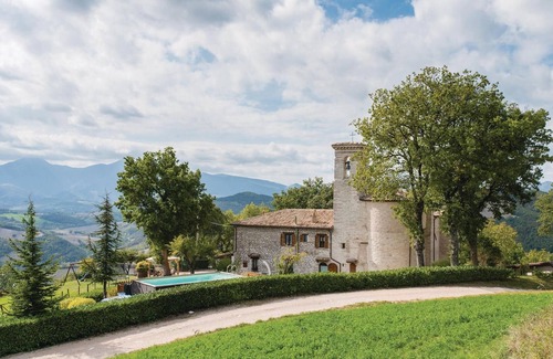 In the mountainous hinterland of the Adriatic, between Urbino (30 km) and Gubbio (40 km), lies this cozy vacation home at 600 m altitude, in a unique panoramic position. The former rectory dominates with its church from its own hill and allows its residents truly unique views of the mountains (Monte Nerone 1525m, Monte Catria 1700m) and valleys. Here you have a lot of privacy - ideal for families and groups. The renovated house has kept its rural charm; so wooden beams and original tiles provide a warm, cozy atmosphere.