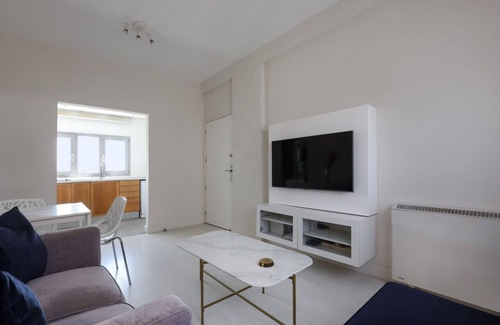 Mini Art House: Pollock, this elegant one-bedroom, one-bathroom apartment is located on the 3rd floor, accessible by both stairs and lift. Upon entering, you’ll be welcomed by a spacious living area furnished with a luxurious double sofa, a 43” smart TV, a stylish dining table for two, and complimentary high-speed Wi-Fi throughout. The modern kitchen is fully equipped with top-of-the-line appliances, including a microwave, washing machine, large refrigerator.