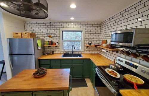 Pickles Cabin - Nestled Deep In the Woods of Arkdale you will find a Picturesque Cabin where Nature and Tranquility Abounds. Upon entering this peaceful retreat you will be greeted with freshly painted Shiplap walls soaring to the peak of the Cathedral Ceiling, a Polished Staircase leads to a Large Loft area with both a Queen and Full Size Bed and Lounging Area. The Living Area’s focal point is a Large Woodburning Stove to take the chill off. Large Windows bring the Outside In with Stunning Views of the Surrounding Forest. Large Farmhouse Table lends plenty of room for meals or games while soaking up the Peacefulness of all that surrounds you. Full Size Appliances, Butcher Block Countertops and Island help make meal prep a breeze in the Open Concept Kitchen. Outdoors features 1.6 acres of Woods to explore and a Custom Built Firepit with Seating for Campfire Memories. Main Floor Primary Bedroom has Queen Size bed and ample room. Newly Remodeled Bathroom has plenty of Character and features a Large Walk In Shower with Plenty of Room for Two.