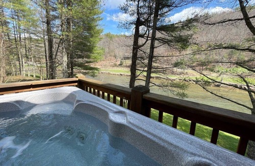 Come up on the deck and enjoy the mountain breezes with your favorite book in the log rockers or unwind in the 6 person hot tub. From hot tub, you can watch the kids on their tubes or they may be fishing for smallmouth bass. Also gas grill for the perfect steak!