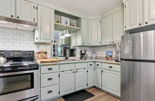 THE PINK GUEST HOUSE COTTAGE w/private entrance & on main level of house! Private patio set. Lovely living room w/queen sofa sleeper, large Smart TV w/Apple TV Box Streaming (your subscription), French doors overlooking side yard & French doors into dining area! Open kitchen w/dining for 4 + Berkey water filter. Bathroom tub/shower & ample counter/storage space. Romantic bedroom with velvet drapes, antiques, comfy queen bed, plenty of closet space & chandelier! Washer/Dryer. Sleeps 1-4.