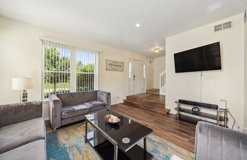 Single Family home with garage parking. Additional driveway parking, if needed. Home won’t disappoint. Cards and game options available.