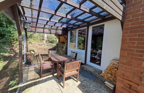Relax in this calm, stylish space. Our bungalow with sauna, fireplace and south-facing terrace with breathtaking views is located on one of the highest streets in the mountain village of Wieda. The holiday home has 2 spacious bedrooms, a spacious living room, a separate dining area in the winter garden, its own kitchen and a bathroom. The house was completely renovated in the first half of 2023. Unfortunately, this house is not handicapped accessible as the stairs had 40+ steps.