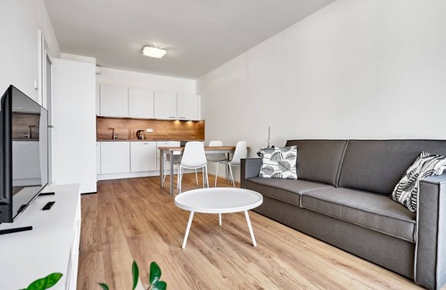 "Plešivec", 2-room apartment 45 m2 on 1st floor. Bright, modern and cosy furnishings: entrance hall. Living room with panoramic window with 1 double sofabed and TV. 1 room with 1 double bed. Kitchenette (oven, 4 ceramic glass hob hotplates, toaster, kettle, microwave) with dining table. Shower/WC. Facilities: Internet (WiFi, free). Please note: non-smokers only.