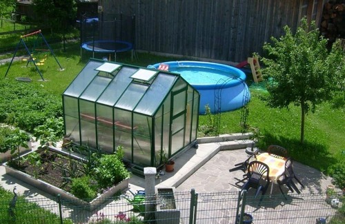 Our newly built, ecological wooden house 100 from Fichte-Nature, conveys a very special living atmosphere. The apartment is 50m² in size, cozy and lovingly furnished and completely equipped with dishes and glasses. With the open design of the apartment you experience a very special atmosphere. Garden with a lounge and playground, trampoline, swing, play equipment and "fleet". You are welcome to help in the stable and in the field. Our dairy cows, calves, rabbits, ducks and cat lili are happy about pats.