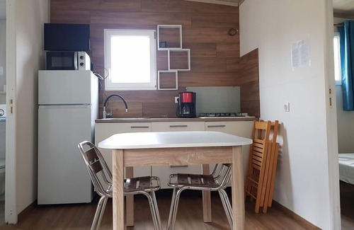 Are you looking for a nice vacation in the mountain region? Full of greenery and quietness, if yes then this chalet with a pleasant terrace has a nice location in the French Dordogne. It can comfortably accommodate a family or a group of friends. In the beautiful surroundings you can enjoy walking and cycling, for example through the forest that is only a 100 m walk from the residence. The center is 5 km away from the house and you can buy daily necessities at the nearby supermarket (2 km). This home is a great starting point for the mountain biking lovers as well. The chalet is attractively furnished and equipped with a beautiful covered terrace; ideal for a relaxing start to the day. The accommodation is also equipped with a kitchenette, a barbecue and parking for the car. The living room is furnished with a TV, a double sofa bed and a dining table.