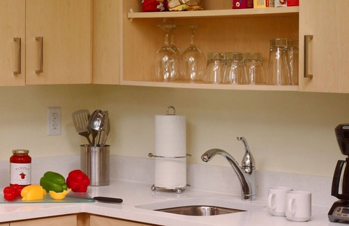 - Full Kitchen with a full-sized refrigerator, stovetop, microwave oven, and dishwasher;