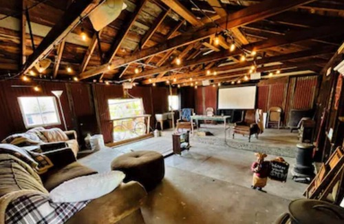 A large private suite with large windows, eat in kitchenette and private street entrance. Enjoy the large back patio and entertainment in barn for all guests. The king bed allows plenty room for relaxing or just enjoying the view out your windows and private glass door. This suite includes a microwave, refrigerator, table for two, Keurig and all amenities.
