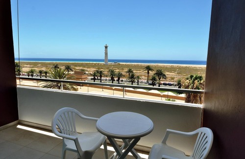 Beautiful apartments with stunning sea views in a top location, just a few seconds from the beach called ‘Playa del Matorral’ and the beach called ‘Playa del Saladar’, in MorroJable, Fuerteventura. Photos show a general view of all the apartments. They all have a good size terrace with views of the sea, 2 single beds, 1 bathroom, a well-equipped kitchen, seating area also with sea views, with a sofa and Wi-Fi. Located in the south of Fuerteventura, Playa de Morro Jable, also known as Playa Jandia, is the large beach of Morro Jable. The lighthouse marks the approximate centre of the beach, which is split into the northern half known as El Saladar and the southern half of Playa del Matorral. The bright sandy beach area stretches for approximately three kilometres. The water is clear and very clean. In both areas, there are windsurfing and sailing schools offering courses and equipment for hire. Near the lighthouse is a well-known surfing location, making for a very special surfing experience. Small beach bars can be found all along Playa de Morro Jable, so that there is within easy reach always the possibility of refuelling with refreshments. Near the lighthouse is also a fairly large nudist swimming area. Near Playa de Morro Jable is a protected lagoon area and behind that the main road of Morro Jable, thankfully far enough away for the traffic noise not to be heard. Parallel to the road a promenade leads to the old centre of the town. From the promenade, you can enjoy a fantastic view over the whole beach area, as well as having access to the beach via several pathways.