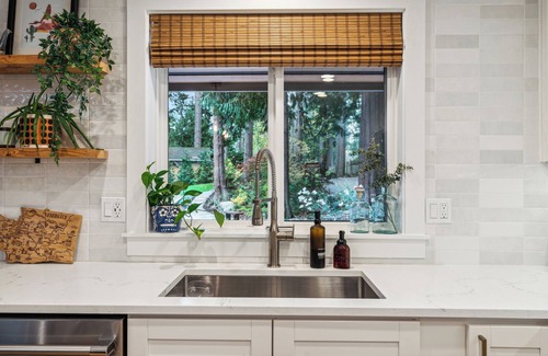 You will be welcomed to the property by old-growth Cedars, Doug Firs, and immaculate landscaping. The single-floor layout with only a couple of steps on the porch ensures easy accessibility for guests. Our light and airy, but totally viby interior will be the perfect place to relax, spend time with family, and rest your head. The backyard is like a park! Outdoor dining, fire pit (wood included!), and a climbing fort for kids your family will make memories you will never forget.