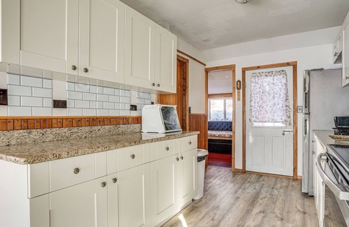 Escape the hustle and bustle and enjoy life on the pond at this Littleton, MA, vacation rental. Tucked into the trees near the water’s edge, this 2-bedroom, 1-bathroom cottage offers a tranquil environment to reconnect with nature all year round. Swim and fish in the summer, ice skate and snowshoe in the colder months, and enjoy peaceful moments on the deck regardless of season!