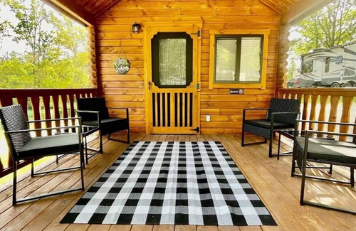 Welcome to our charming cabin, nestled in the heart of the renowned Northern Kentucky RV Park. Upon entering, be embraced by a warm ambiance that effortlessly melds the rustic charm of the cabin with the allure of the surrounding attractions. Enhance your stay by relaxing on your private porch, savoring moments of peace while taking in the picturesque views that this cabin has to offer.