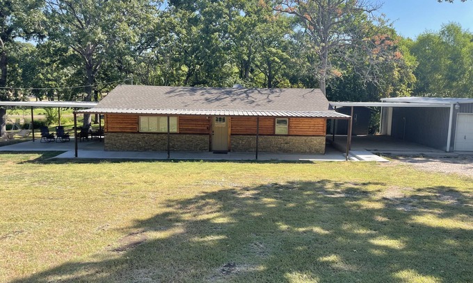 Forget your worries in this fully-remodeled spacious and serene cabin. Enjoy fishing the beautiful pond or watch the birds fly in from the back porch hammock chairs. Less than a mile from sandy beaches of Washita Point and the Alberta Creek marina, this cabin is your next lake vacation getaway!