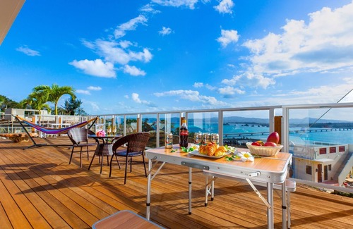The villa is located on a hill on Kouri Island in Nakijin Village located in the northern part of the main island of Okinawa Built on a hill with a panoramic view of the ocean and Kouri Ohashi Bridge The villa is based on a white color that evokes a sense of cleanliness and the open space will soothe your tired body