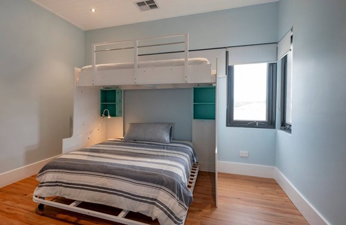 Perfect for families or groups, this room is equipped with a tri-bunk, consisting of a double bed on the bottom and a single bed on top.