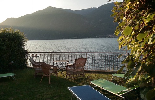 Splendid stately home directly on the lake, private garden and veranda from which you can enjoy an exceptional view of the central stretch of the lake. Interior with fine finishes, divided on two levels. The first living area with kitchen, lounge and bathroom. French windows leading directly onto the veranda and garden. On the first floor the main double bedroom facing the lake with parquet flooring and a master bathroom. Two other bedrooms, one double and one twin, with shared bathroom. Internet WIFI available. Charming and quiet location overlooking the center of the lake. Ideal location for excursions and visits both to the most beautiful places on the lake, Bellagio Cernobbio, Varenna, Menaggio, and to the splendid villas located on the lake.