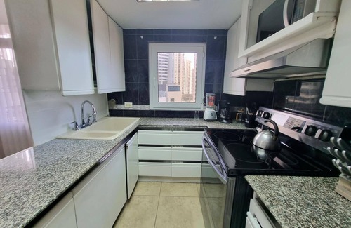 Feel comfortable in this unit with a dining room, from where you can appreciate the bay and the coastal strip, a modern open concept kitchen, fully equipped with all appliances, it also has storage space, 2 large bedrooms and 2 bathrooms, master bathroom with bathtub. It has elegant and functional furniture that will adapt to the most demanding tastes. The unit has 1 parking space.