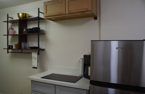 A cute little studio perfect for someone looking for a home away from home. All the comforts of home and quick access to all central Phoenix has to offer. Private gate leads to studio. Newly renovated. A kitchen with a two burner stove and refridgerator. A couch that turns into a Day bed for two twin beds in the common area along with the Queen bed in the sleep area there is room for a small family.