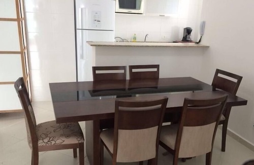 Apartment of 70 m2 is 100 meters from the beach, clean beach with several kiosks to your liking, W space restaurant at 40 meters very good recommend (price a little expensive), nearby there are snack bars, supermarkets, pharmacies, other restaurants, in the center of Ubatuba has the Aquarium, vintage car museum, various shops and mall. Apartment has Wi-Fi internet access as well as the entire condominium, has air conditioning in the living room and bedrooms, 2 bedroom, 1 suite with box queen and 1 dresser, 1 bedroom with 1 single bed and 1 pull-out bed and dresser plus 4 mattresses if needed, in the bedrooms have 7 pillows with cover and all beds with mattress cover, hall bath in the hall, living room with tv and dvd, retractable sofa, curtain, panel with rack in the bedrooms and TV room has ceiling fans, balcony with barbecue grill and its utensils, full kitchen with all necessary utensils, coffee maker, mixer, orange juicer, table with 6 chairs, stove, microwave, fridge, laundry room with washing machine and drying, floor clothesline, very comfortable and everything new holds 8 people INCLUDING CHILDREN. In the common area there is a heated indoor pool, sauna, games room, playroom, large outdoor pool with chairs, lift in the building. I'm sure you will not regret meeting Ubatuba and staying in this comfortable apartment near the beach !! More information on Facebook Residencial Cedro e Cerejeira.