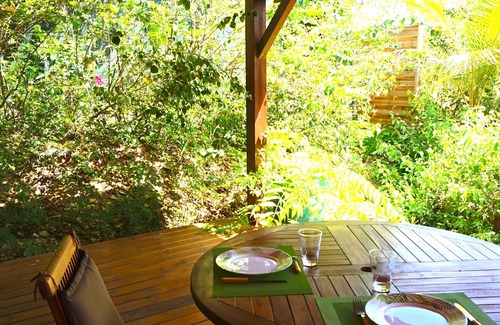 The furnished studio has all mod cons. It is close to Souffleur Beach, with karbays, and the shops —a 10-minute walk. There is free parking 20 metres from the studio flat. It offers free Wi-Fi and a private terrace. There is a cistern with tap water. Outside there is a tap to rinse beach items. The bedroom is air-conditioned. Here, and in the kitchen, you can find fans. The windows are covered with mosquito nets. The kitchen offers an oven, a microwave, electric hobs, a fridge, and a washing machine. There is a Château d'Ax sofa bed and a walk-in shower. A sliding door separates the bedroom and bathroom. The whole studio has anti-slip tiles. You can hire a car with one of our delivery partners at the airport.