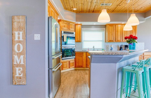 Welcome to Emerald Isle by Casago Bolivar Vacations. This luxurious 3-bedroom, 2-bathroom home offers amazing beachfront views and the soothing sounds of the Gulf. With an open-concept living area, high ceilings, and a wraparound deck, this home is designed for relaxation and enjoyment. Located in Gilchrist, TX, it's the perfect base to explore local restaurants, shops, and nearby attractions like Gilchrist Beach and the Fun Spot Water Slide.
