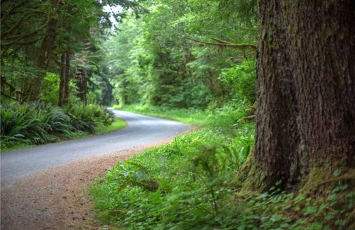 Situated on ten acres of coastal rainforest, our Forks WA Lodging is just about as far west as you can get in the lower 48 states. The property’s hemlocks and spruce are still imposing, and there’s a Western Hemlock on the property well over 1000 years old. The grounds include wonderful trails, bits of whimsy and lovely spots to picnic.