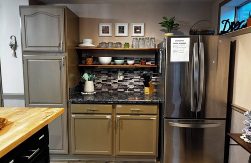 Welcome to our cozy getaway! This fully furnished, two-bedroom lower unit offers the perfect blend of privacy and comfort, making it ideal for couples, small families or solo travelers. Featuring a private entrance, you can come and go with ease, with a key code entry ensuring your stay is both peaceful and convenient. Master bedroom has a smart TV for your streaming needs with a queen pillow top bed, 4 pillows, large closet and a dresser. 2nd bedroom has a fire TV, Full size pillow top mattress pad, 4 pillows, dresser and closet. Both bedrooms have sound machines to help with those sleepless nights. We also have a-deluxe queen auto fill blowup bed for extra use. For Babies we have a pack n play, highchair, baby bouncy seat, stroller and wagon. Family room has a 55 in smart TV (with all your streaming needs) dvd player with dvd’s and an Alexa for your use. Leather sectional couch with recliners, and 2 chairs. Bedrooms and living room have their own split system. (Heat/air) for you to control. Work area for your computer use with high speed internet. The kitchen has a full refrigerator with bottom freezer/ice maker, Dishwasher, Table and 4 chairs. Great coffee station- (coffee and tea included). Toaster oven/air fryer, 1 Countertop Precision Induction Cooktop burner, large electric fry pan, toaster, egg cooker, blender and crockpot for your cooking needs. Plates, bowls, silverware, glassware and wine glasses. 1 Full bath off both bedrooms including bath towels, blow dryer, shampoo, conditioner, body wash and lotion. Half bath also has a blow dryer , hand soap, lotion and hand towels. Laundry room with Tide pods, dryer sheets and dryer balls for your convenience. We have board games, puzzles and cards for those low-key nights. Outside, Sit and enjoy a cup of morning coffee with a view of the deer in the woods or by the campfire (wood included) with beautiful stars above, right out your door. We have marshmallow sticks and cornhole (Bags) for outdoor use. For those who are going to the water parks we have large pool towels for use also.