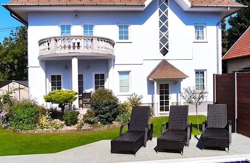 Our private holiday house (240 m2) for 10+2 with private swimming pool, air-conditioning is situated just 200-300 m away from Lake Balaton and 400-500 m away from city centre. There are altogether 5 bedrooms with double beds plus 2 extra beds possible, a well-equipped kitchen with dishwasher, a living-room and many terraces. There are altogether 5 bathrooms. In the garden you can find a grill, pool, parking lot.