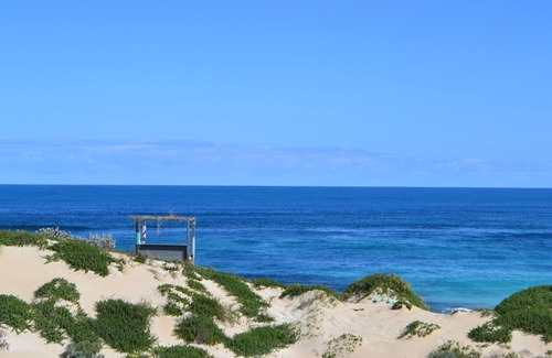 This cottage is located approximately 250 metres from your own private beach. This is the 3rd of 3 cottages on our 68 acre property made entirely from and fitted out with second hand upcycled and recycled materials. Most of the materials have been saved from going to the tip. Its well appointed, quiet and has an amazing view of the ocean! It is off grid and powered by a stand alone solar system. Nature and relaxing awaits you!! This stretch of coast is also well known for great surfing and fishing. You can even bring along your dog if they can cope with no fencing and love the beach!