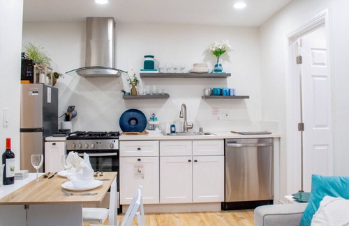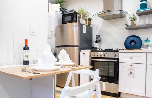 This exceptional rental features private driveway parking, a private entrance, a magical garden with outdoor living space, unique local artwork, a cozy living room with a smart TV, a well-equipped kitchen, in-unit laundry, entertainment options with Fire Stick TVs and high-speed Wi-Fi, a spa-like bathroom, and a serene bedroom for the best sleep ever.
