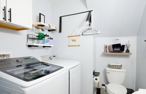 -Fully stocked kitchen: blender, sandwich maker, waffle maker, Instapot, air fryer, egg cooker, all utensils, pots/pans, dinner sets, mugs, and more. Even our furry guests can eat from our raised pet bowls!