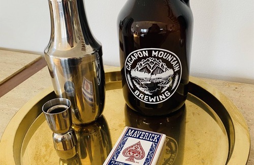 Aerie is on an unusually large lot (2 acres) at the end of a road, and it backs to state park land. Only 12 minutes' drive to the Berkeley Spring State Park and baths and downtown, you can enjoy being in the woods and being close to town and shops. You can walk (about 20 minutes) or drive (3 minutes) to Berkeley Springs Brewing Company and Coolfont Resort.
