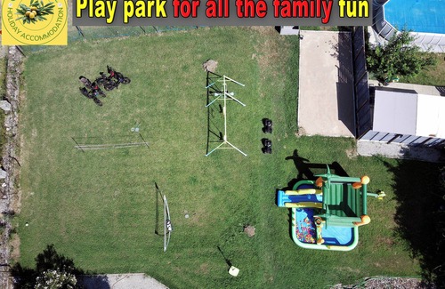 There is play park which includes a bouncy castel, 2 electric quad bikes for young children, there is also a large swing frame, garden trampoline with safety net, badminton and swing-ball should you feel energetic. and a Pétanque court for the adults, all are free to use. There are also 4 electric bikes which can be hired.
