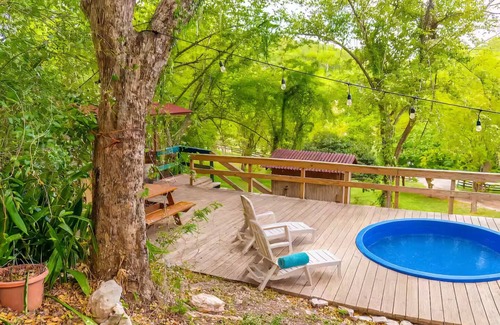 Private Pool Beneath a Tree Canopy – Petite and shallow, perfect for relaxing. Whether you’re taking a quick plunge, lounging in calm water, or letting kids splash, it’s the ideal treat after a day outdoors.