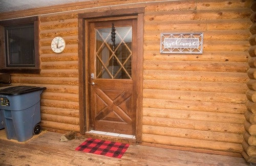 With the quaint, fully stocked kitchen, entertain your closest friends and family outside on the wood porches, on the picnic tables or in the spacious amazing living room and dining room. This true log cabin does have AC on the ground floor, the basement is naturally cool, year round and ceiling fans in every room.