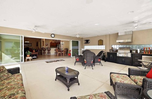 Step inside this charming two-bedroom, two-bathroom home and discover a haven of comfort and style. The living area is designed for relaxation, featuring comfortable seating and a welcoming atmosphere. Adjacent, you'll find a fully equipped kitchen, complete with modern appliances and everything you need to prepare delicious meals. Both bedrooms offer king-sized beds, promising restful nights. The bathrooms are well-appointed, providing all the essentials for your convenience. But the true highlight is the outdoor space. Step outside to your private oasis, where a sparkling solar heated pool and spa await. Relax poolside, soak up the Florida sun, and create lasting memories. A complimentary golf cart is also included, offering easy access to explore the Villages and all its amenities.