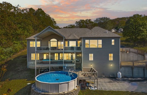 Lakefront Luxury awaits your next memorable trip with breathtaking views of Table Rock Lake only moments from Top of the Rock and Big Cedar Lodge! This inviting home elevates its guests with beautiful decor, a private deck complete with a pool and hot tub, theater style projection entertainment room, and more! You'll feel like a million bucks staying in the luxurious home away from home where boredom isn't an option. Amenities abound with a pool table, foosball table, outdoor private basketball goal, and stand-up arcade with 100 games.